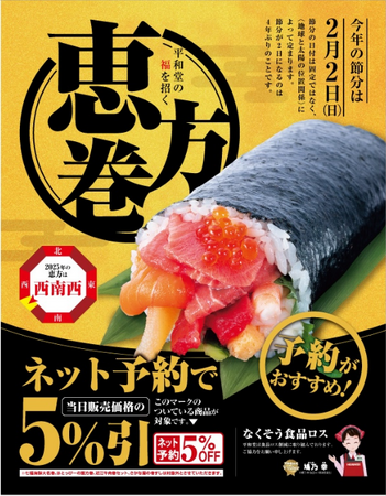 株式会社平和堂(本社:滋賀県彦根市、代表取締役社長執行役員CEO:平松正嗣)は、恵方巻の予約を平和堂・エール160店舗で承っております。