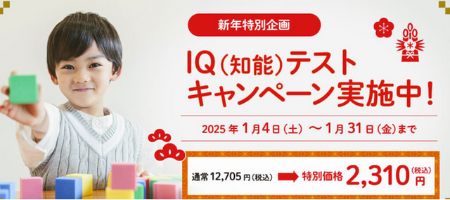 『IQ(知能)テスト』が特別価格2,310円で受けられるのは1月31日(金)のお申し込みまで!