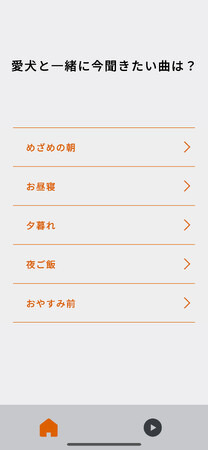 ユーザーが選択したシーンに応じて、愛犬のリラックスや快適な生活をサポートする音楽を自動で再生します。