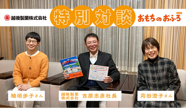 2024年に10周年を迎えた絵本『おもちのおふろ』が、新装版となって刊行されたことを記念して、本書に推薦コメントを寄せてくださった越後製菓の吉原社長と、本書の著者で絵本作家の苅田澄子さん、植垣歩子さんとの特別対談がウェブで公開されました。