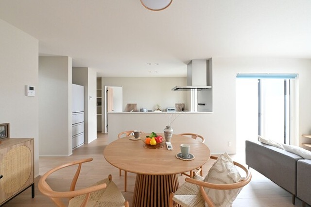 開放的なリビングは、家族が自然と集まり顔を合わせられる空間を実現。プライベート空間を確保しながら、家族全員が「ほっとできる」心地よさを提供します。平屋ながら広さと快適さを兼ね備えた設計が魅力です。