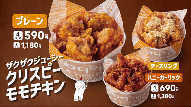 ワタミ株式会社(本社:東京都大田区、以下ワタミ)が国内で運営する、韓国No.1 フライドチキンブランド『bb.q オリーブチキンカフェ(以下、オリーブチキンカフェ)』は、2025年1月9日(木)より「クリスピーモモチキン」シリーズを再度販売いたします。2024年10月に発売した「クリスピーモモチキン プレーン(4個入り)」(590円税込)、「クリスピーモモチキン チーズリング(4個入り)」(690円税込)、「クリスピーモモチキン ハニーガーリック」(690円税込)が、ご好評の声にお応えしての復活販売となります。
