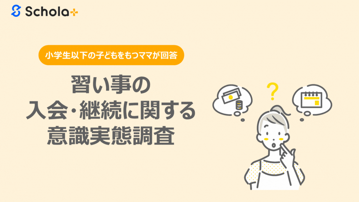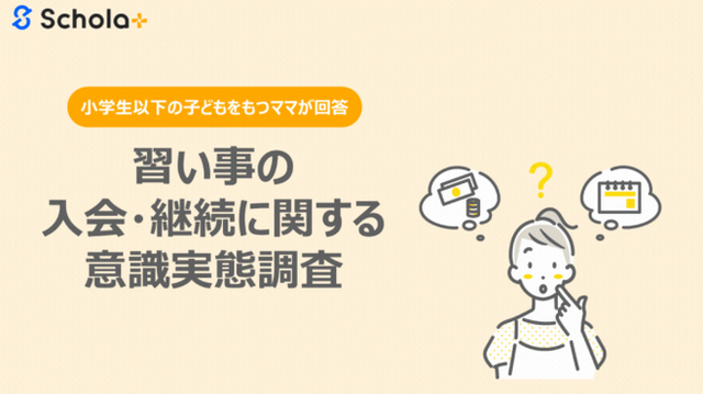 習い事やスポーツ教室の運営事業者向けに業務効率化を支援するDXサービス「Schola+(スコラプラス)」を提供するVISH株式会社(本社:愛知県名古屋市、代表取締役:田淵浩之)は、マーケティング支援の一環として『習い事の入会・継続に関する意識調査』を実施しました。本調査は、小学生以下の子どもを持つ保護者300名を対象にインターネットを通じて行いました。