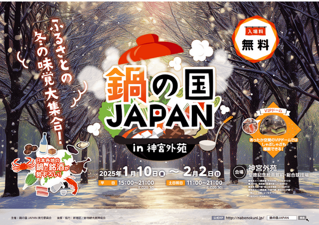 日本の冬の風物詩である『鍋料理』をテーマにした食の祭典「鍋の国JAPAN 2025 in 神宮外苑」を、開催します。