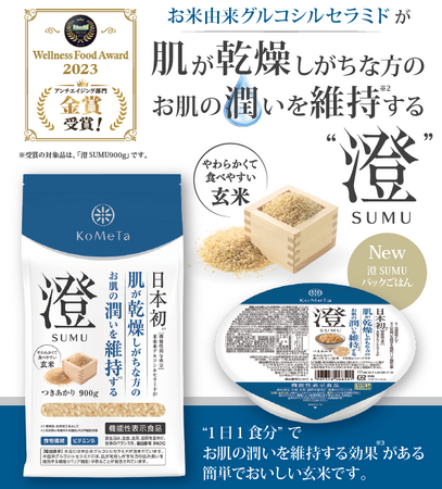 日本で初めて、米由来グルコシルセラミドがお肌が乾燥しがちな方のお肌の潤いを維持する機能があるとして、機能性表示食品に届出された玄米加工品です。