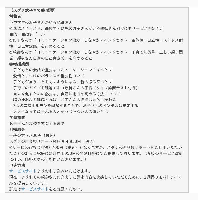 事 業 内 容:不登校支援事業、スダチ式子育て塾