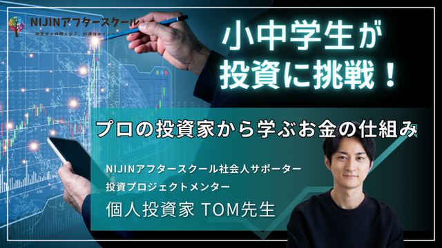 株式会社NIJIN(本社:東京都江東区、代表取締役:星野達郎)が運営する小中学生を対象としたメタバース学童『NIJINアフタースクール』は、投資プロジェクトを立ち上げ、1月14日にプロの投資家TOM先生から投資を学ぶことができる勉強会を開催いたします。