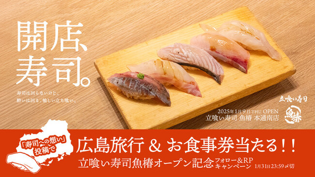 広島旅行&お食事券が当たる!立喰い寿司魚椿オープン記念フォロー&RPキャンペーン