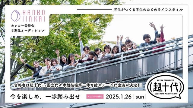 また、合格者の初お披露目のステージとして2025年3月26日(水)、国立代々木競技場第一体育館(東京都渋谷区)にて開催が予定される10代のための体験型イベント「超十代 -ULTRA TEENS FES- 2025 10th Anniversary presented by docomo」のステージ出演が決定しました。カンコー委員会8期生メンバーの初お披露目の瞬間をオンライン、オフラインの両方でご覧いただけます。最新デザインの制服を十代に人気のモデルやカンコー委員会8期生が着用し、超十代のランウェイを歩きます。