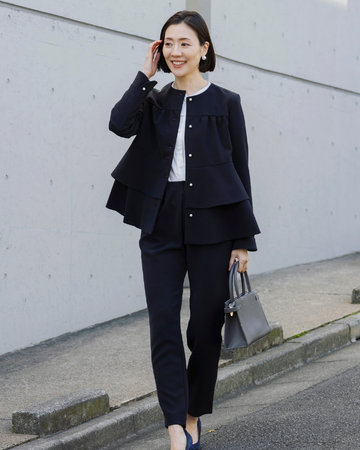 きちんと感が簡単に手に入るジャケットカチッとしたイメージのジャケットを女性らしいフェミニンなアイテムに昇華