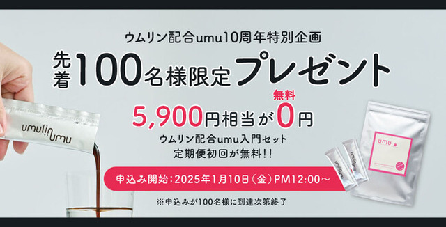 ウムリン配合umuをはじめてご利用の方に向けた、ウムリン配合umu入門セット[定期便初回](5,900円相当)を無料でお届けします。