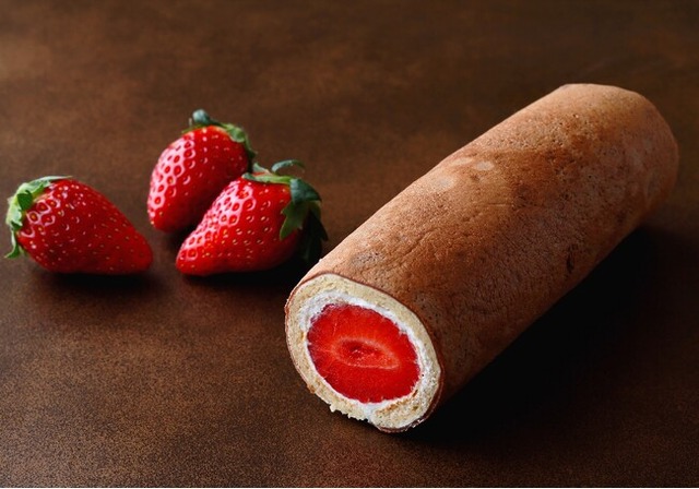 当ホテルの「恵方ロール」は、大粒で甘みたっぷりの国産いちごを、くちどけのよい上品な生クリームとともに、海苔に見立てたココア風味のクレープ生地としっとりときめ細やかなスポンジで一つひとつ丁寧に巻きあげています。丸かぶりできるように細身に仕上げているので、一般的なロールケーキよりもいちごそのものの味をお楽しみいただけます。