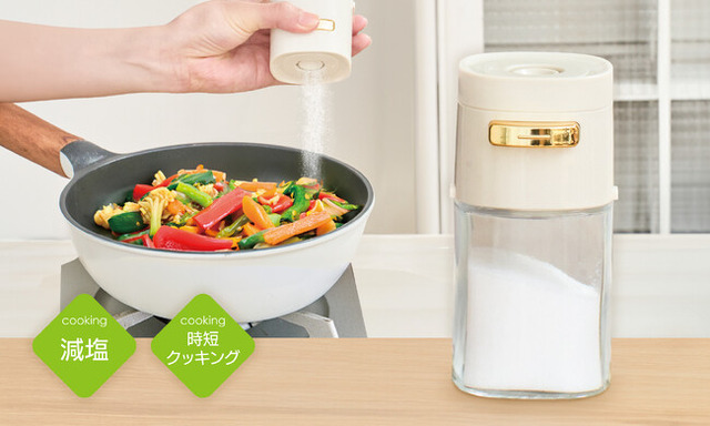 塩だけでなく砂糖、コショウ、唐辛子、スパイスなど1粒2mm未満であれば使用できます。