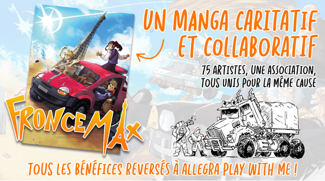 その他、このプロジェクトでは、総勢75名のマンガ家、イラストレーター、クリエイターが手掛けた作品を集めたマンガ「Fronce Max」を制作し、子どもたちに提供します。プロジェクト内でクラウドファンディングも実施され、集まった資金は「Fronce Max」の印刷費用や、フランスの慈善団体「Allegra Play With Me」の活動資金として使用されます。