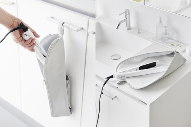 吊り下げても置いても出し入れ簡単な耐熱ヘアーアイロンポーチ。