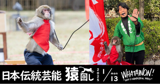 株式会社antiqua(本社:大阪府和泉市)が手がける南大阪のエンターテインメントモール『WHATAWON(ワタワン)』にて、特別イベント「日本伝統芸能 猿回し」を2025年1月13日(月)に開催いたします。日本が誇る伝統文化の一つである『猿回し』が、1000年以上の歴史を経て、現代のエンターテインメントとして新たな感動をお届けします。