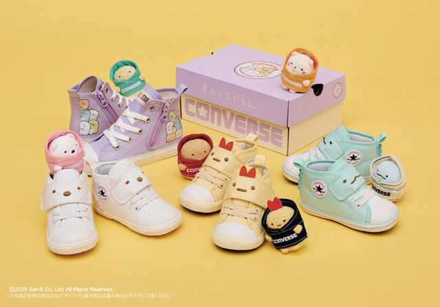 今回のコラボレーションでは、コンバースを代表するモデル「オールスター」やデイリーユースにおすすめのランニングモデルに、すみっコたちが可愛らしくデザインされたシューズが登場します。