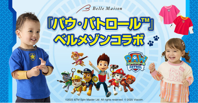 株式会社千趣会(本社:大阪市 代表取締役社長:梶原健司 以下千趣会)の通販事業ベルメゾンは、テレビ東京系で放送中の大人気アニメ『パウ・パトロール』とコラボレーションした子ども服、親子で楽しめるパジャマなど6アイテムを2025年1月16日(木)よりベルメゾンネットにて販売開始します。(https://www.bellemaison.jp/)