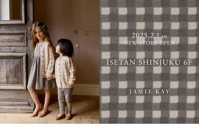 株式会社マッシュスタイルラボ(本社:東京都千代田区/代表取締役社長:近藤広幸)は、ニュージーランドの高品質なオーガニック素材を使用し、世界中にファンを抱える人気の子ども服ブランド「JAMIE KAY(ジェイミーケイ)」の世界第2号店を2025年2月1日(土)に伊勢丹新宿店にオープンします。オープンを記念して、限定商品やノベルティーをご用意いたします。