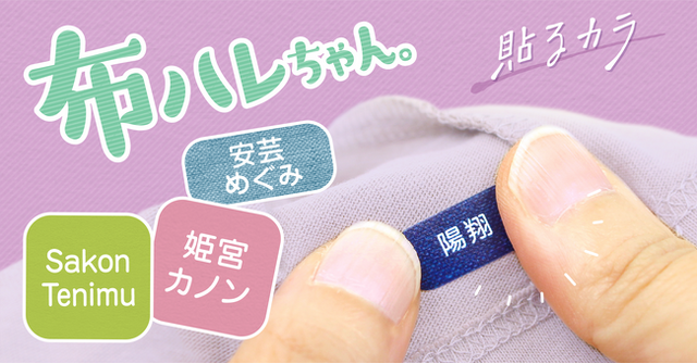 2年かけて独自開発した素材「布ハレちゃん。」は、今までアイロン用シールでしか貼りつけることが出来なかった布地に、ギュッ!と貼るだけで洗濯ができるため忙しいかたにオススメの商品です。