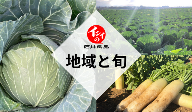 “未来に持続可能な、食の循環型ビジネスモデルを構築する。”私たちはその一環として、『地域と旬』というコ ンセプトのもと、独自の商品開発を行っています。日本の各地域で手間ひまをかけて育てられた食材を、石井食品の無添加調理※1 技術により魅力ある製品へとプロデュースします。市場の価格変動に左右されず、収穫時期ごとに適正価格で仕入れ、その製品に対する消費者の声を直接生産者のみなさまにフィードバックすることで持続的に良質な食材を作り、発展していける循環型ビジネスモデルを構築すること。それが『地域と旬』です。製品を通じ、その地域の認知向上と消費増加を行い、地域の活性化に繋げてまいります。 2030 年からは、食材活用を通じた雇用機会の創出、それによる生産量の増加を目指し、地域農業の発展をより強化します。