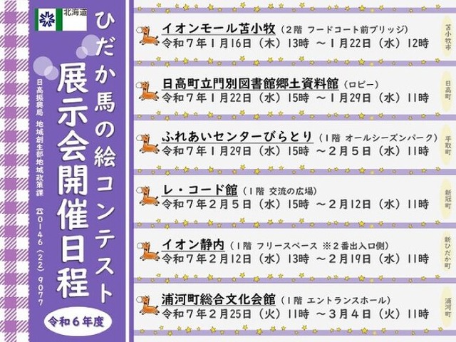 令和6年度は、5月13日~9月30日までの期間に作品を募集し、日高管内及び東胆振地域小学校13校から、合計101点の作品を応募いただきました。その中から選ばれた、入賞11作品の展示会を開催しますので、是非お越しください。