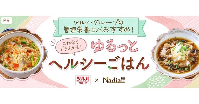 Nadia株式会社(東京都港区/代表取締役社長 葛城嘉紀 以下「Nadia」)と株式会社ツルハホールディングス(北海道札幌市/代表取締役社長 鶴羽 順)がタイアップし、ツルハグループ管理栄養士の認知拡大、管理栄養士がおすすめする健康食品の消費拡大を目的に、特別企画ページ【ツルハグループの管理栄養士がおすすめ!ゆるっとヘルシーごはん】を公開いたします。
