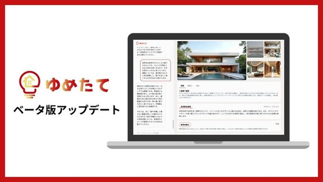 株式会社ARKLET(本社:愛知県名古屋市、代表取締役:村上拓朗)は、生成AIを活用した次世代の家づくりサポートサービス『ゆめたて』のベータ版のアップデートを2025年1月16日より無料公開いたします。
