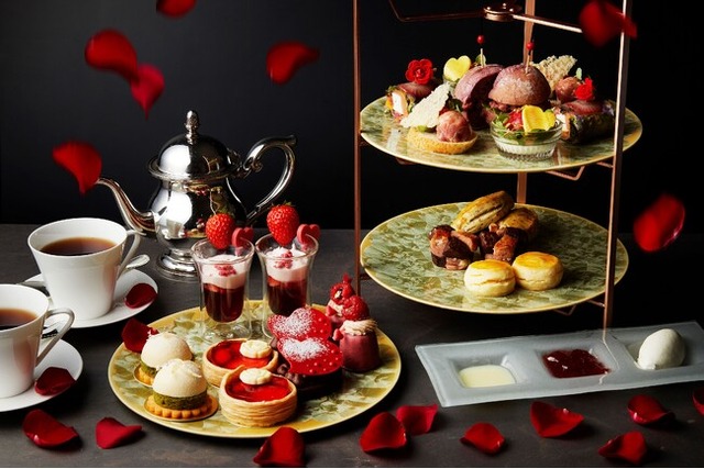 スコーンには定番のクラシックとレモンバジル。ストロベリーとチョコレートの2種類の生地をねじって完成させたチョコレートストロベリースコーンは、見た目もユニーク、食べる位置によって味も少しずつ変化します。都会の喧騒から離れた優雅なた空間で、バレンタインからホワイトデーの期間限定、旬のいちごと愛らしいハートモチーフが織りなす至福のティータイムを心ゆくまでお楽しみください。