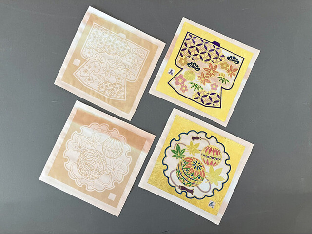 伊と幸図案家によるオリジナル意匠 絹織物に友禅色挿しと金彩体験