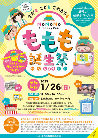 これから社会の常識となることが予想され、非常に注目度の高い「AI技術」を駆使し、商店街考案の新しいマスコットキャラクター「もももちゃん」と実際に対話してもらうことで、若い世代にこの地域の歴史や商店街の魅力を『話して・知って・見つけて』もらう取り組みです。