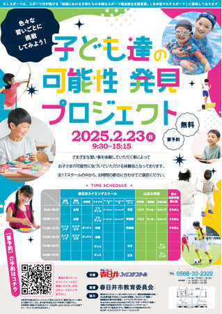 上述したように、子ども達に様々なスクールや習い事、活動を手軽に経験できる場を提供したいという想いから、KLスポーツで開校している9スクールに加え、本プロジェクトにご賛同頂きました8スクールのみなさまにもご協力頂き、2025年2月23日(日)に『子ども達の可能性発見プロジェクト』(主催:KLスポーツ/後援:春日井市教育委員会)と題して、全17のスクールが無料にて体験できる場を作らせて頂くことになりました。