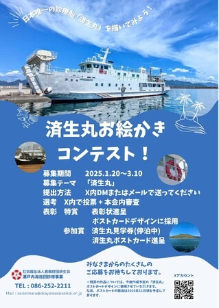済生丸を共同運営している4県(岡山・広島・香川・愛媛)の済生会支部では、この度、済生丸事業をできるだけ多くの皆様に知っていただくことを目的に、「済生丸お絵かきコンテスト」を実施することといたしました。