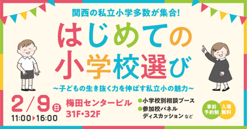 朝日新聞グループの(株)大阪朝日広告社(本社:大阪市西区、 代表取締役:上新徹也)では、「はじめての小学校選び~子どもの生き抜く力を伸ばす私立小の魅力~」を2025年2月9日(日)に大阪の梅田センタービル(31F・32F)で開催いたします。現在私立小学校を検討している方だけでなく、これから私立小学校への進学を考えてみたい方も対象とした進学相談イベントとなり、関西(大阪・兵庫・京都・奈良)の学校のお話しをまとめて聞いて頂ける絶好の機会です!また、当日ご来場いただいた方には各参加校の最新入試情報を参加特典としてお渡ししておりますので、ぜひご参加ください。