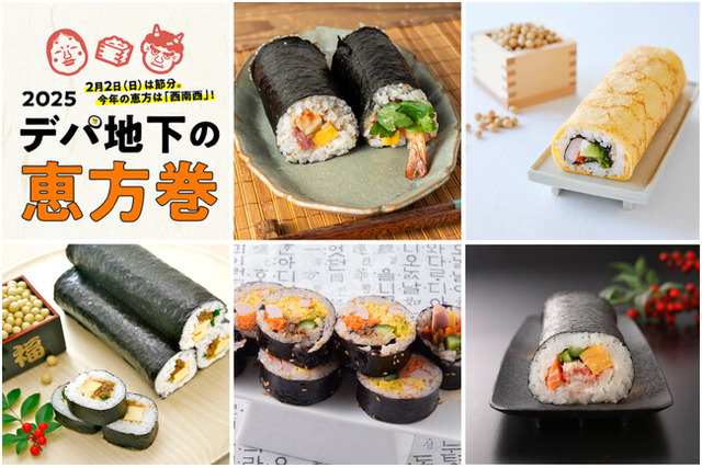 そんな街に位置する大丸心斎橋店の食品フロアでも、「恵方巻」は節分の風物詩。すしの老舗の定番や関西人気店の変わりネタやガッツリネタ、さらに昨年新規オープンしたお店のこだわりの恵方巻も加わり、デパ地下ならではの幅広いバリエーションでご用意しております。週末の節分にぴったりの、みんなでシェアできるカット済み太巻きもおすすめです。