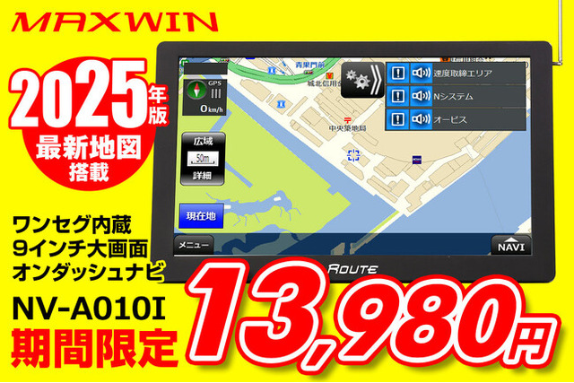 カー用品メーカーMAXWINの2025年版最新ポータブルナビ9インチ『NV-A010I』がAmazonで数量限定特別価格にて販売を開始しました。