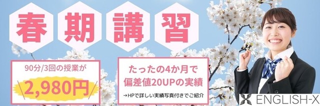 東京大学や早稲田大学・慶應大学の現役合格など多くの実績を持つENGLISH‐Xの授業を春期講習(2025年2月10日(月)~2025年4月2日(火))期間、2980円/3回でご提供いたします。