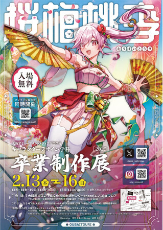 大阪アミューズメントメディア専門学校キャラクターデザイン学科、2年間の集大成である卒業制作展「桜梅桃李(おうばいとうり)」を2025年2月13日(木)~16日(日)開催します。