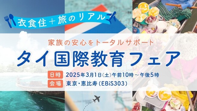 SGB International Co., Ltd. (代表者:竹川千晶 )が主催する教育を通じてタイの魅力を皆様に知って頂く『タイ国際教育フェア』を2025年3月1日(土曜日)に東京恵比寿、エビススバルビルにて開催致します。御三家インターナショナルスクールとして知られておりタイで最初に開校したISBインターナショナルスクール他人気の学校がタイから9校、ベトナムから1校お越し下さいます。