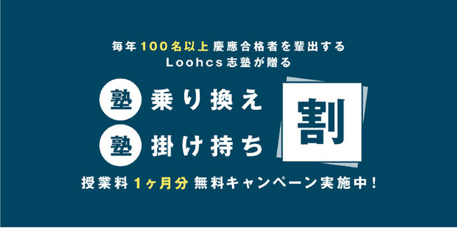 Loohcs株式会社(代表取締役 :嶺井 祐輝 本社所在地: 渋谷区桜丘町)は、同社運営の総合型選抜・AO推薦入試専門の学習塾「Loohcs志塾」において、塾乗り換え・掛け持ち割キャンペーンを実施することをお知らせいたします。
