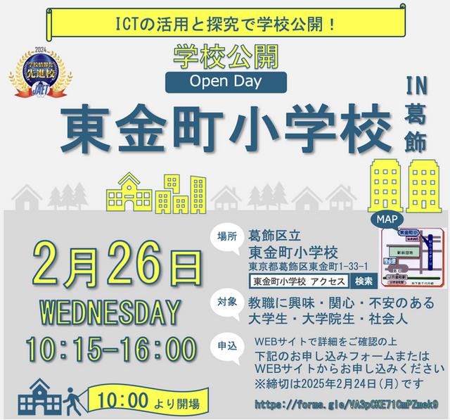 葛飾区立東金町小学校(校長:河村 麻里)は、2025年2月26日(水)10:00-16:00 に学校公開「 Open Day」を開催いたします。