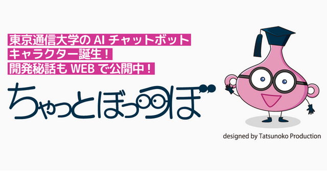 東京通信大学のWEBサイトで、AIチャットボットキャラクター「ちゃっとぼっつぼ」の詳しいプロフィール、タツノコプロ本社で取材したキャラクター誕生秘話を掲載中です。