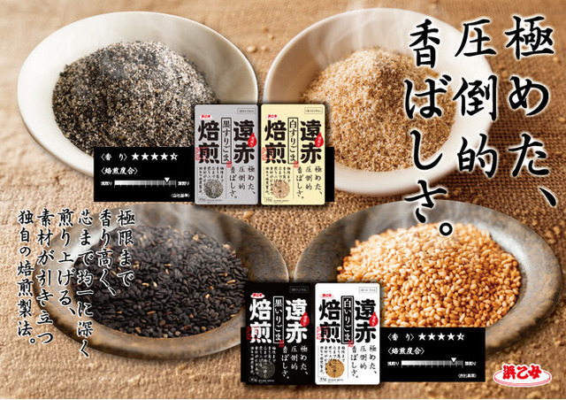 のりやごま、ふりかけ、お茶漬けの素などの製造、販売を行う、株式会社浜乙女(本社:名古屋市中村区、代表取締役社長:服部義博)は、浜乙女独自の焙煎製法を取り入れたごま製品4品「遠赤焙煎シリーズ」を発売いたします。