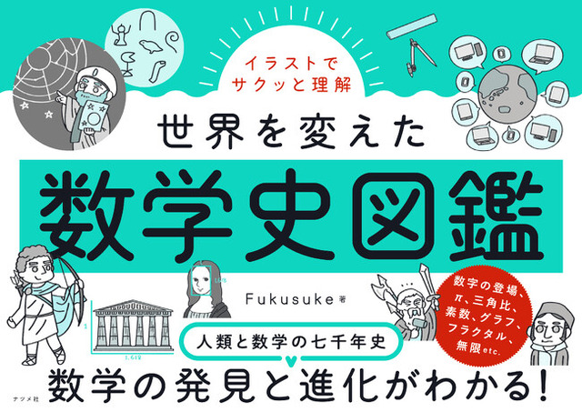実用書や児童書、教養書を発行する出版社、株式会社ナツメ社(東京都千代田区、代表取締役:田村正隆)は、『イラストでサクッと理解 世界を変えた数学史図鑑』(https://amzn.asia/d/amk9dey) の第2刷を出来。シリーズ累計13万部突破の横長図鑑シリーズの1冊で、幾何学の始まり、数字、π、さまざまな曲線、三角比、素数といった数学発展の歴史を、地図や人物イラストを添えて解説しています。