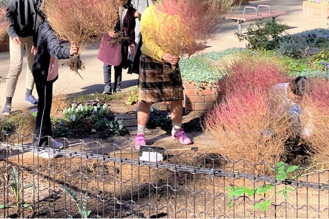 また、今回は暑すぎた気候などの影響もありホウキソウ(コキア)の紅葉が進まず紅葉し始めたところで枯れてしまったため、子どもたちにとって気候の変化が生活に影響することについて考えるきっかけとなりました。2月にはこのホウキソウ(コキア)でホウキを作成する予定です。第一園芸では、花と緑を通じた環境保全活動やSDGsに貢献する活動を今後も継続してまいります。