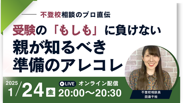2025年1月24日(金)20:00~20:30、ウェブメディア「不登校オンライン」は、不登校からの進級・進学に悩む保護者向けの無料のオンラインイベントを開催します。