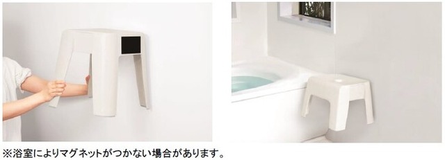 当社では、マグネットで浴室の壁面に石けん置きやシャンプー等のボトルを浮かせることができる浴室収納シリーズを販売しています。浮かせることで水切れが良くなり、ヌメリや水垢やカビが発生しにくく、清潔に使用できると、お客さまよりご好評いただいています。また、浴室床面の掃除の際に邪魔にもなりません。そのような中、浮かせることができる浴室収納シリーズとして、「DCM マグネット付き風呂いす」を新発売します。