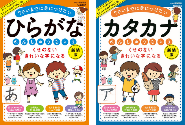 子どもの発達に合わせた楽しい問題で能力を伸ばす「学研の頭脳開発シリーズ」より、『ひらがなれんしゅうちょう』『カタカナれんしゅうちょう』の2冊が、ユニバーサルデザイン版として新発売。