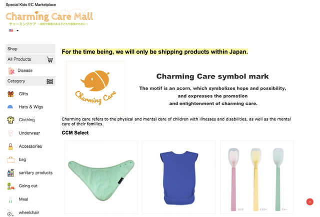2020年1月、病気や障害があったとしても子どもの可愛らしさ・子どもらしさを尊重するケアという意味を込め“チャーミングケア”と名付け、ECマーケットプレイス「チャーミングケアモール」の立ち上げに至りました。