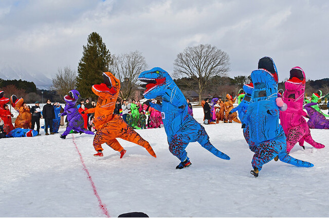 雪原でティラノサウルスレースを開催!幼獣の部、成獣の部などの部門別で大盛り上がりです